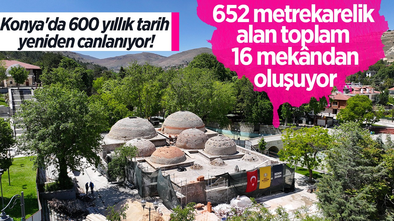 Konya Büyükşehir Belediyesi, Tarihi Meram Köprüsünün yanındaki Karamanoğlu Mehmet Bey Hamamı’nın restorasyonunu yaparak tarihi eseri yeniden ihya ediyor.