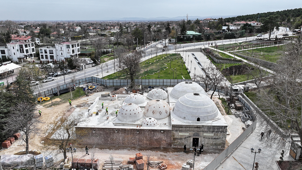 Konya Büyükşehir Belediyesi, Tarihi Meram Köprüsü’nün yanında bulunan Karamanoğlu Mehmet Bey Hamamı’nın restorasyonunu kesintisiz şekilde sürdürüyor.