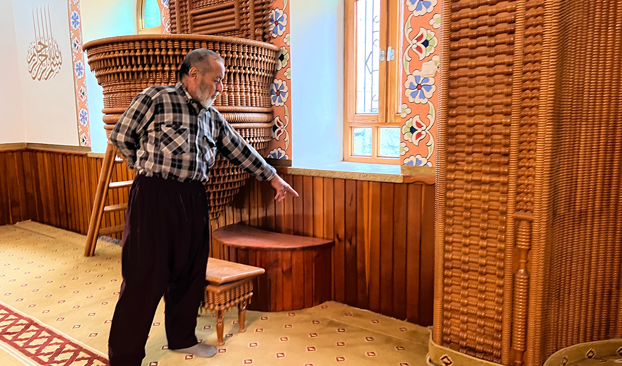 Burada yaptığımız ağaçlar hepsi eşli, karşılığı aynı parçalarla yaptım, camimiz o şekilde güzelleşti. İç kapısı ise beni biraz yordu. Sebebi ise ben kapıyı elimle oydum. Ben 1970 yılında askerden geldim, Larende tarafında bir dükkan açtım. O gündür bugündür ahşap işine devam ediyoruz. İş çok ama eleman olmayınca iş alamıyoruz" dedi.