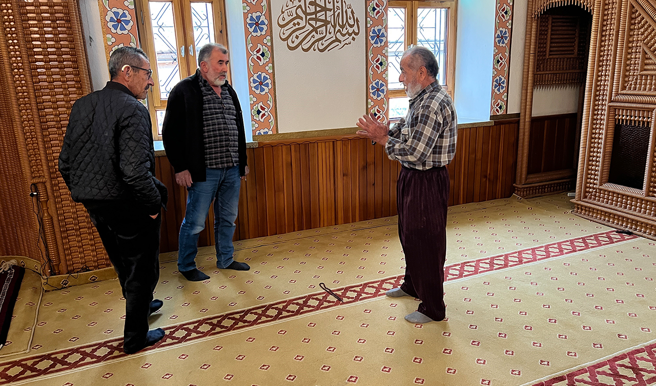 Eskiden bizim mahallemizde 500 ile 600 arasında hane vardı. Ben bunların hepsine zamanında iş yaptım. Dolap, pencere, kapı ve yüklük gibi çeşitli çalışmalar yaptık. Cami ise eskiden ahşaptı yıkıldı zamanla taş binaya çevirdik. Kapıları ahşap, pencereleri falan ahşap ben burayı kafamdan ayarlayıp çaktım.