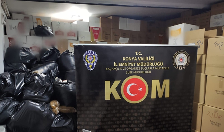 Kaçakçılık ve Organize Suçlarla Mücadele Şube Müdürlüğünce (KOM) Konya’da tütün satışına yönelik faaliyet gösteren depo ve iş yerlerine yapılan operasyonda çok sayıda makaron, kaçak tütün, sahte etiket ve sigara doldurma malzemeleri ele geçirildi.