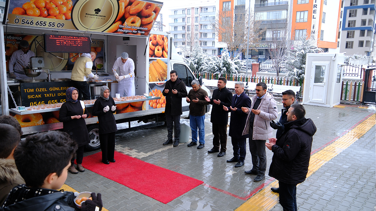 "6 Şubat Depremi Anma ve Dayanışma Etkinliği" kapsamında okul bahçesinde lokma tatlısı dağıtıldı. Karapınar Apak Cami İmamı Ömer Bayır'ın yaptığı dualarla öğrenciler, depremde yaşamını yitirenler için dua etti.