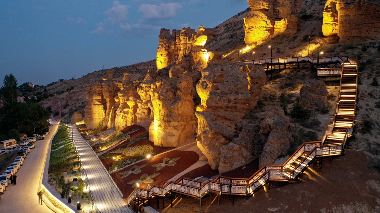 Konya’nın Kapadokyası Kızlar Kayası’nda gerçekleştirilen çevre düzenlemesinin kendileri için özel bir öneme sahip olduğunu ifade eden Meram Belediye Başkanı Mustafa Kavuş, “Meram Bağı ile başlayarak Meram Millet Bahçesi’ne kadar uzanan 1,5 kilometre çap aralığındaki tarih, turizm ve kültür rotası bizim gönlümüzde tüm bu yatırımlarımız içerisinde apayrı bir yere sahip. Kızlar Kayası Çevre Düzenlemesi’nin de bulunduğu rotada yer alan Meram Bağı, Lavanta Bahçesi, Kızlar Kayası, Meram Köprüsü, Tavusbaba, Aydın Çavuş, 80 Binde Devri Alem Parkı ve Meram Millet Bahçesi, Vadi-i Meram’ı adeta inci bir gerdanlık gibi süsledi. Kızlar Kayası Çevre Düzenlemesi başlı başına Meram ruhunu yeniden canlandırması bakımından çok değerli bir proje ama değerini bu inci gerdanlığın bir parçası olmakla da alıyor” dedi.