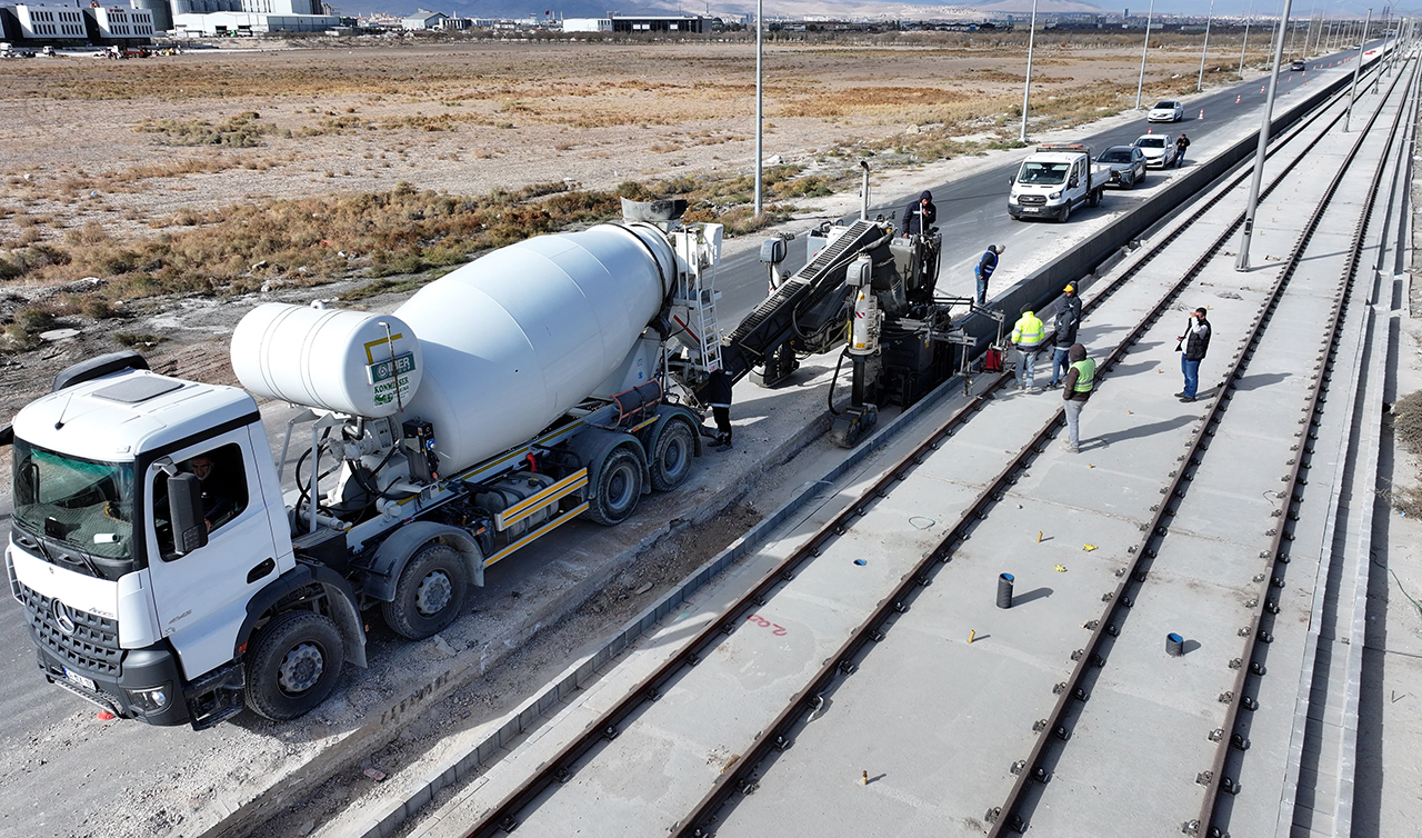Konya Büyükşehir Belediyesi, Adliye-Şehir Hastanesi- Stadyum tramvay hattı inşaatında trafiği kapatmadan, hızlı ve güvenli bir sistemle beton bariyer yapıyor. Konya Büyükşehir Belediye Başkanı Uğur İbrahim Altay, bariyerin uzun ömürlü ve sağlam bir yapıya sahip olduğunu belirterek, “Tramvay güzergahı boyunca ağır vasıta trafiğinin yoğun olması sebebiyle yerinde finisher aracılığıyla çelik kayar kalıp üzerinde beton bariyer yapıyoruz. Bu sayede beton bariyer imalatını trafikten ayırarak maksimum düzeyde trafik akışı sağlamış oluyoruz. Yapılan bariyerin ortalama 50 yıl ömrü var” dedi.