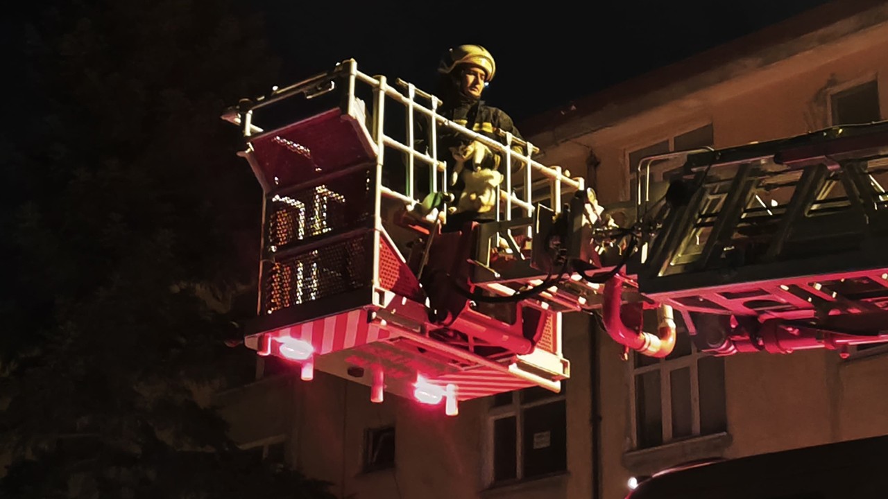 Olay yerine gelen itfaiye ekipleri, merdiven yardımıyla Mercan'ı ağaçtan indirerek sahibine teslim etti.