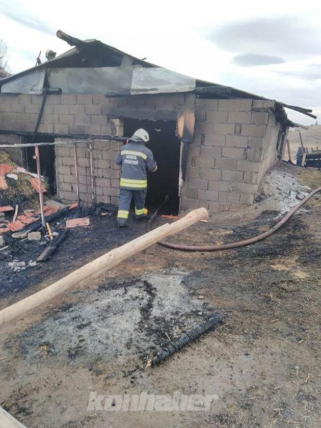 Yangın, Halkapınar ilçesi Bahçelievler Mahallesi'nde Mehmet Ergüner’e ait ağıl ve evde çıktı.