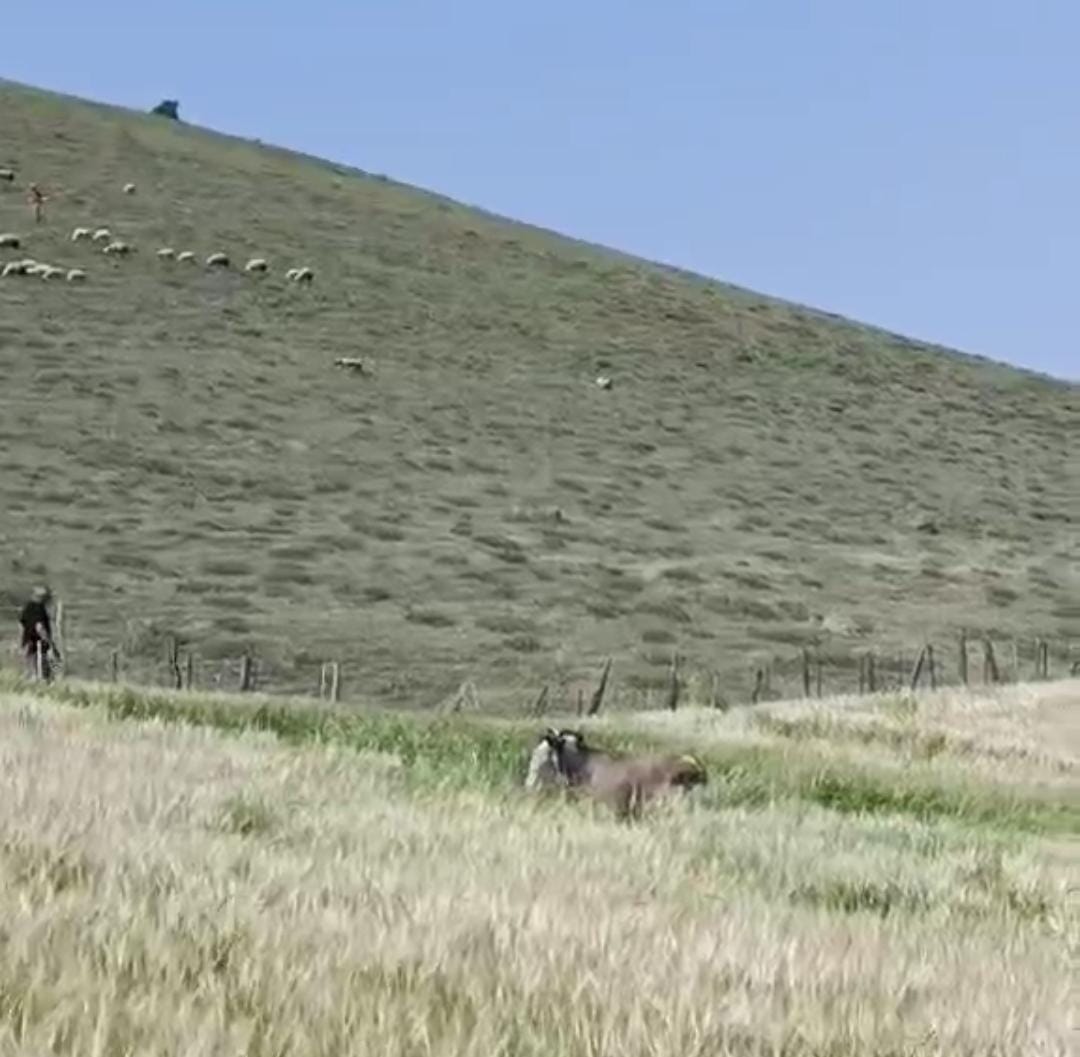 Ekili tarlaya giren kurbanlık tosunu yakalayamayan sahipleri ve mahalleli Kulu Belediyesinden yardım istedi.