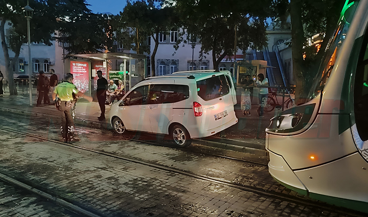 SAĞA ÇEKMEK İSTERKEN TRAMVAY YOLUNA GİRDİ