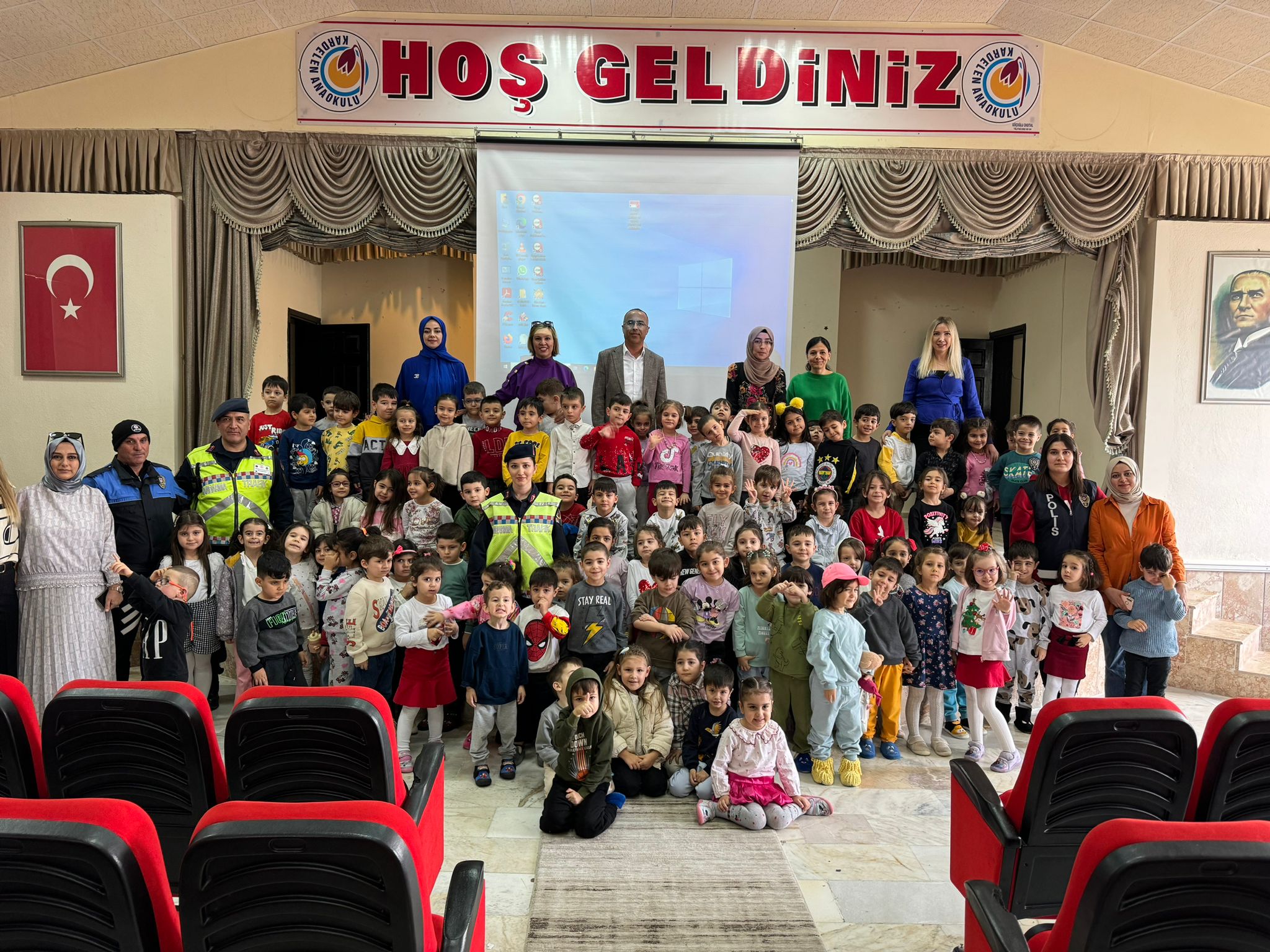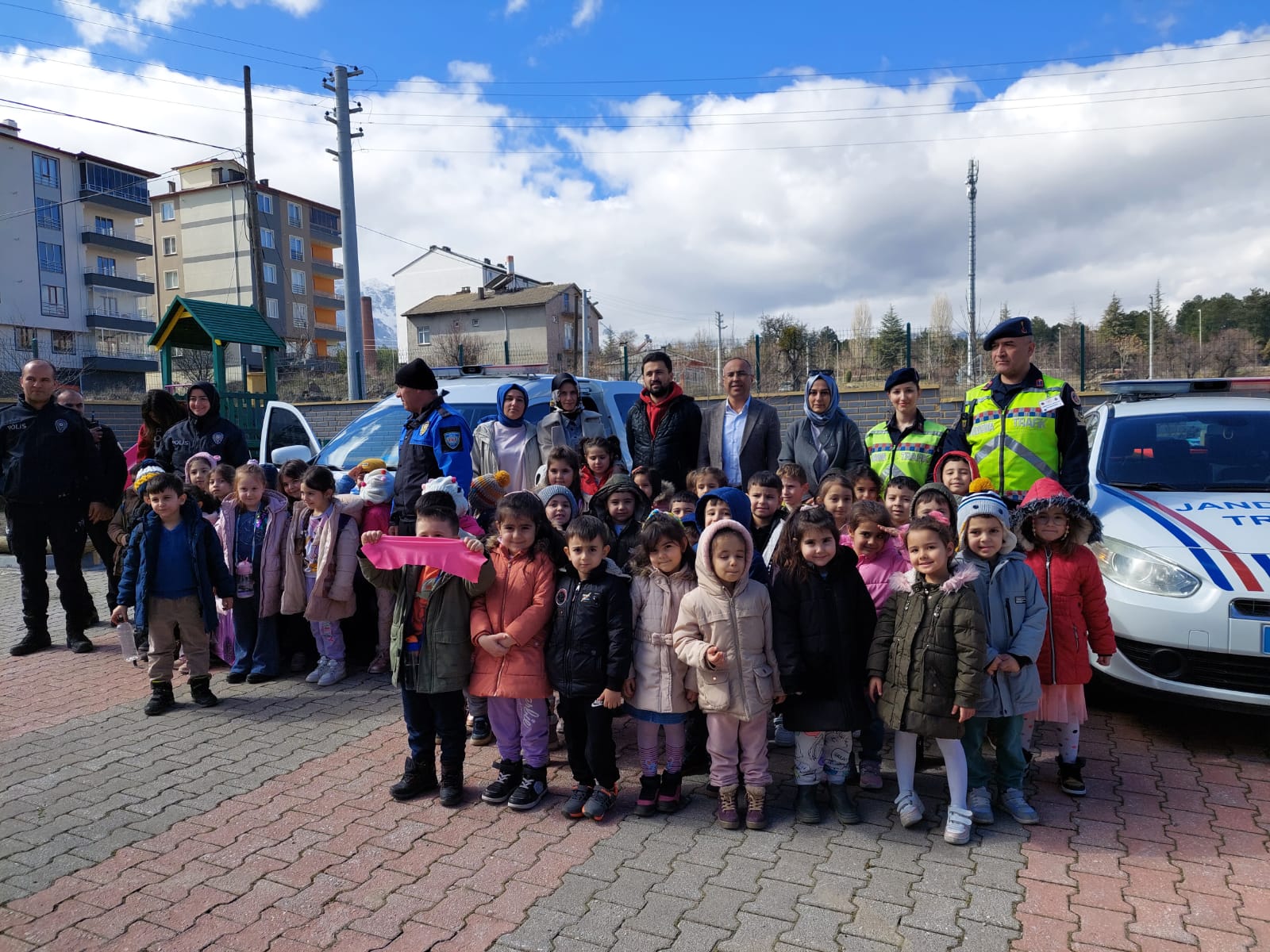 Trafik bilincini kazandırmak amacıyla İlçe Emniyet Müdürlüğü ve İlçe Jandarma Komutanlığı personelleri tarafından Kardelen Anaokulu öğrencilerine meslek tanıtımı yapılarak genel trafik kuralları, emniyet kemerinin kullanımı ve önemi, karşıdan karşıya güvenli geçiş kuralları, trafik işaretleri, okul servis araçlarına binme ve inme kuralları konularında eğitim verildi bilgiler aktarıldı.