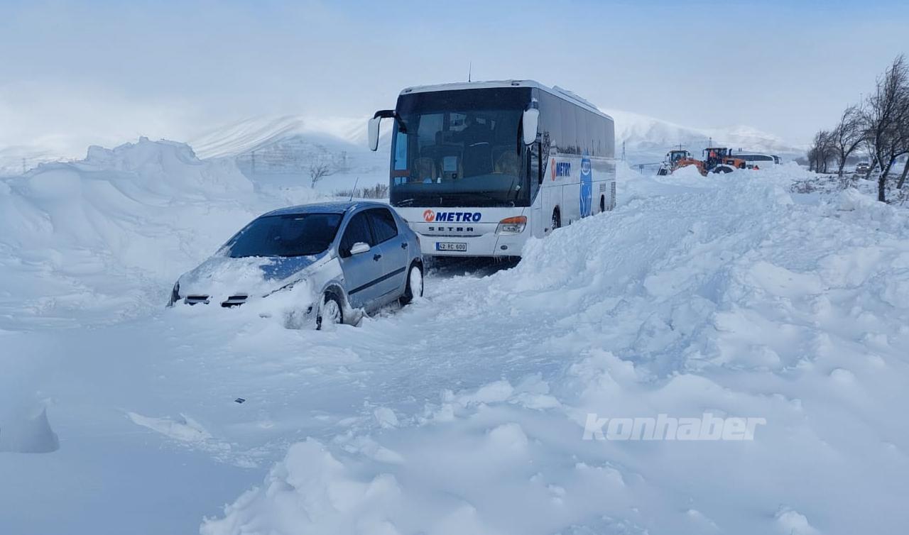 Ülkenin bir kısmı depremle bir kısmı ise kar yağışı ile mücadele ediyor. Tüm yurtta ulaşım olumsuz şekilde etkilendi. Konya’yı diğer illere bağlayan karayollarında onlarca yolcu mahsur kaldı.