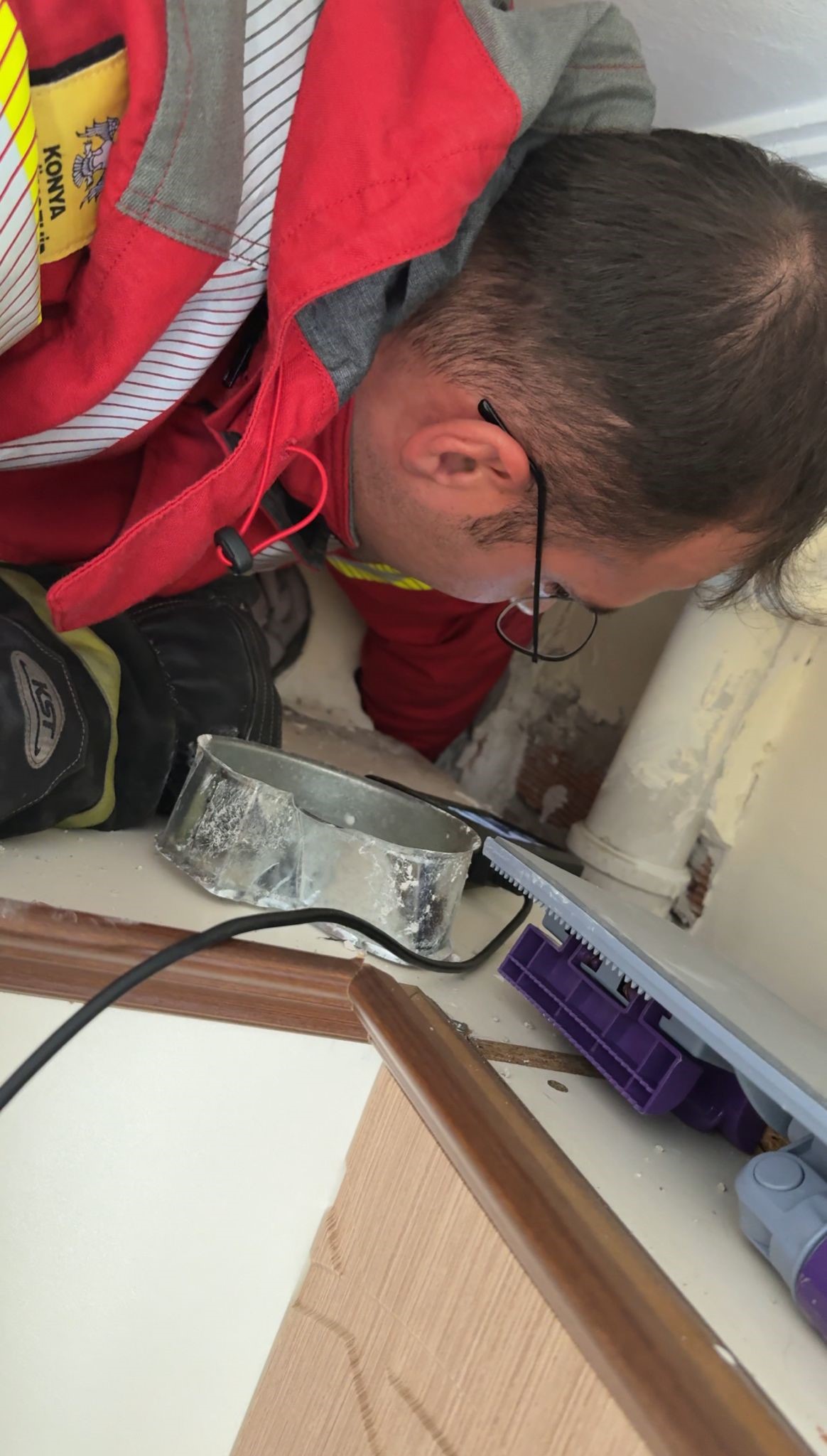 Binanın çatısına çıkan ekipler görüntüleme sistemiyle bacadan kedinin yerini tespit etti. Kedi, itfaiye ekipleri tarafından 6 saat süren çalışmanın ardından 1. kat ile zemin kat arasında dairenin bacasından kurtarıldı.