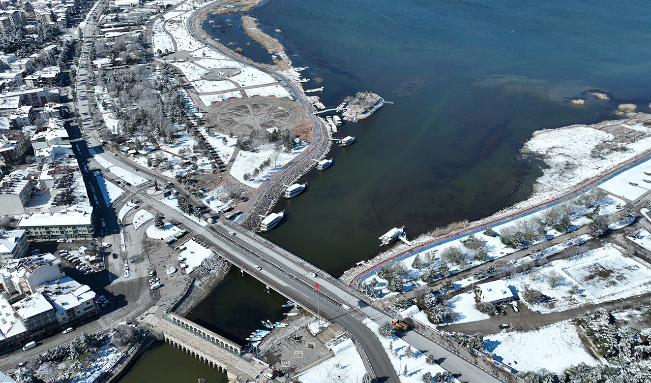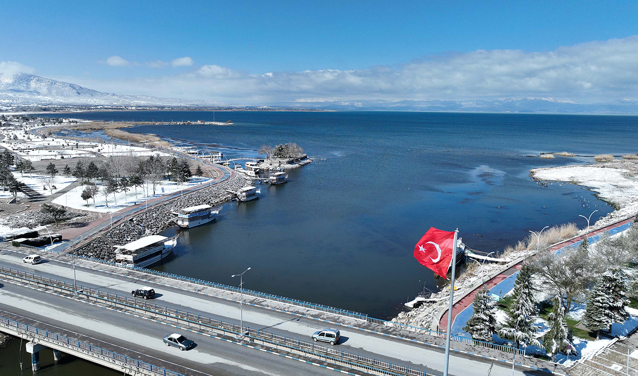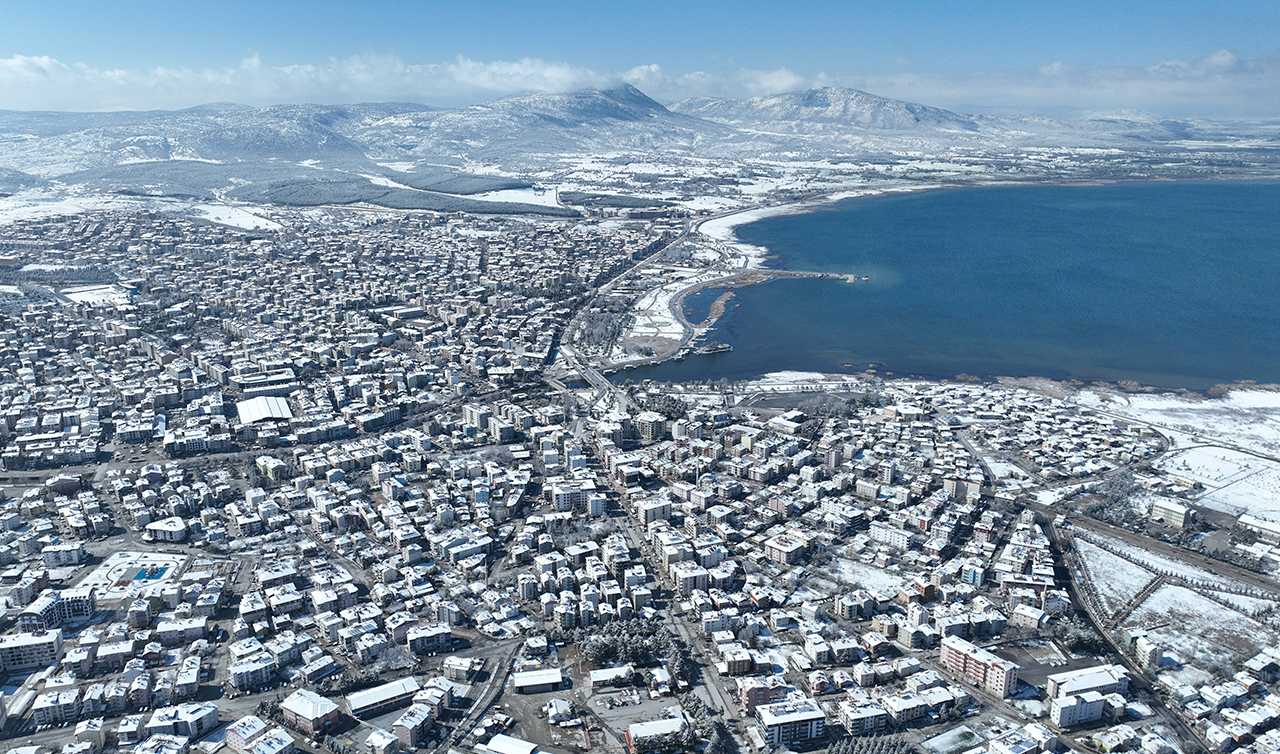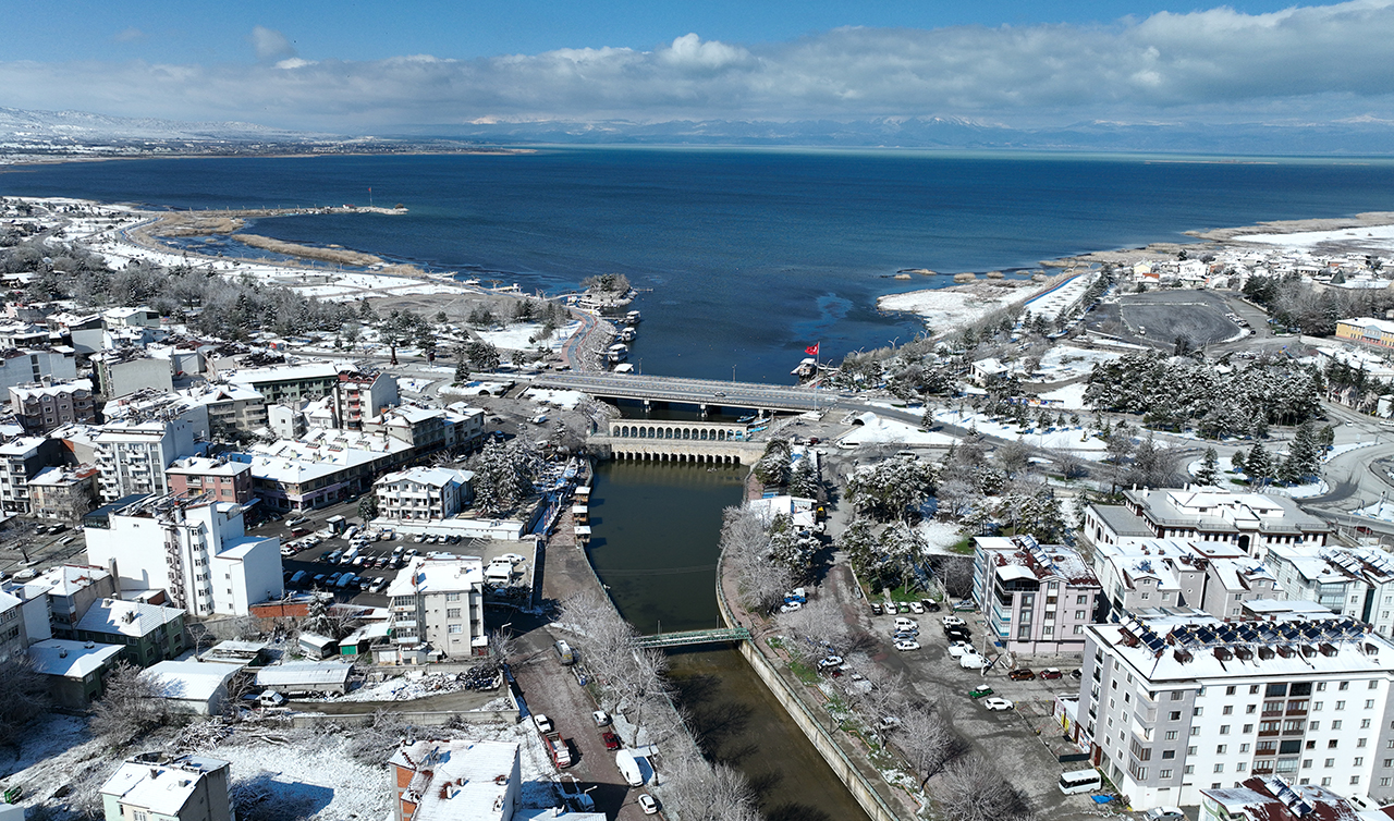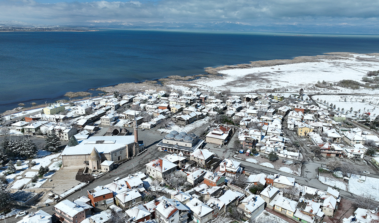 Yağışla birlikte Türkiye'nin en büyük tatlı su gölünün bulunduğu Beyşehir ilçesi beyaza büründü.