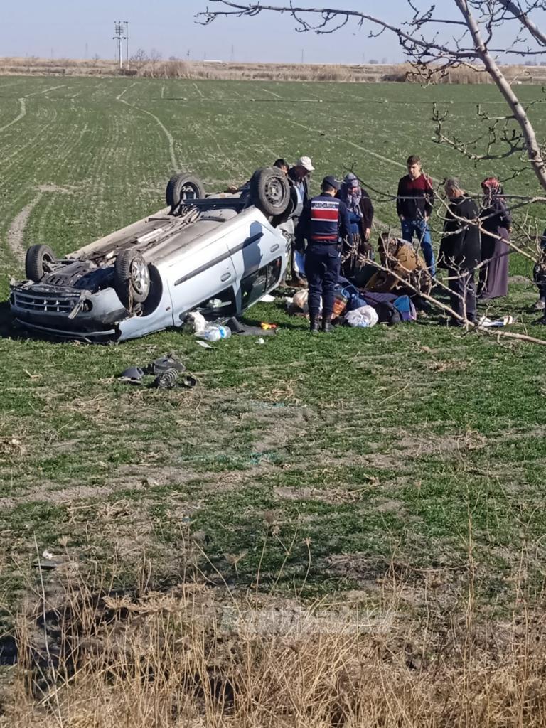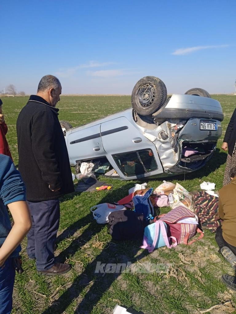 Konya'da öğle saatlerinde seyir halindeki araç yola fırlayan köpeğe çarpmamak için direksiyonu kırdı. Araç yol kenarında ki boş arazide takla attı.