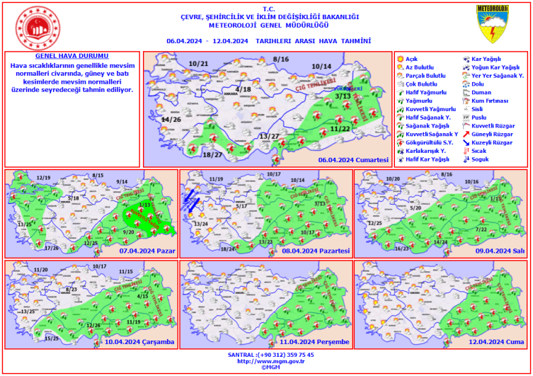 Pazar günü (07.04.2024): Parçalı ve yer yer çok bulutlu