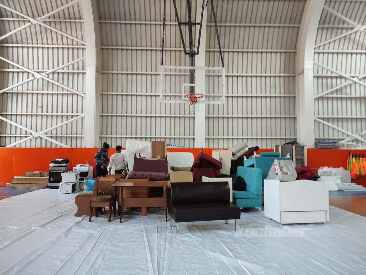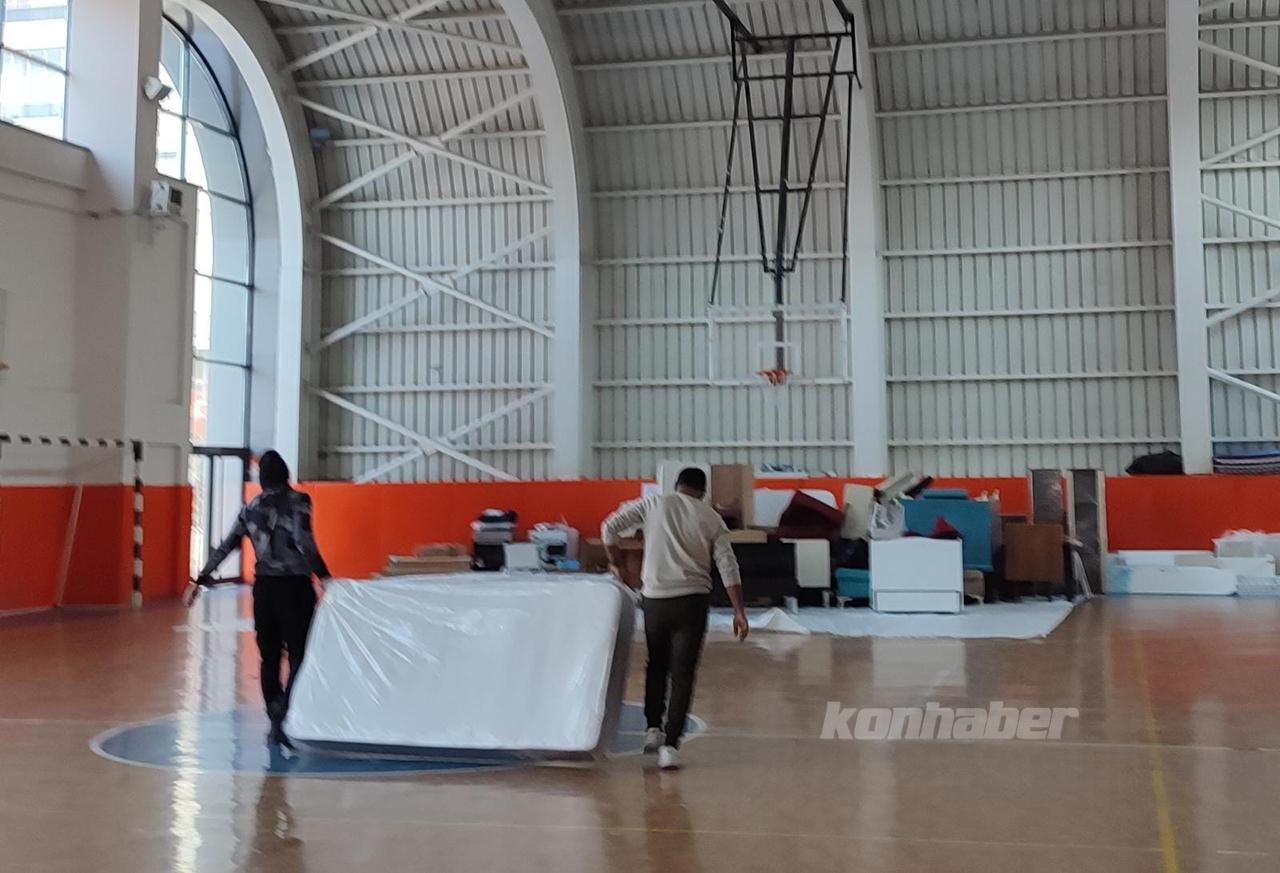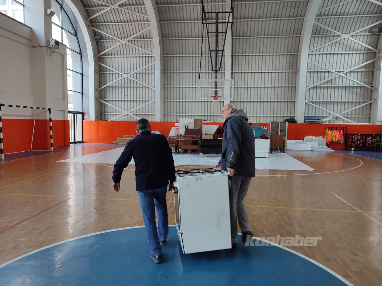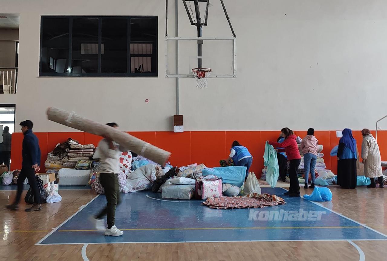 Konya'da bazı okulların spor salonları depremzedelerin ihtiyaçlarını karşılamak üzere depo haline getirildi.