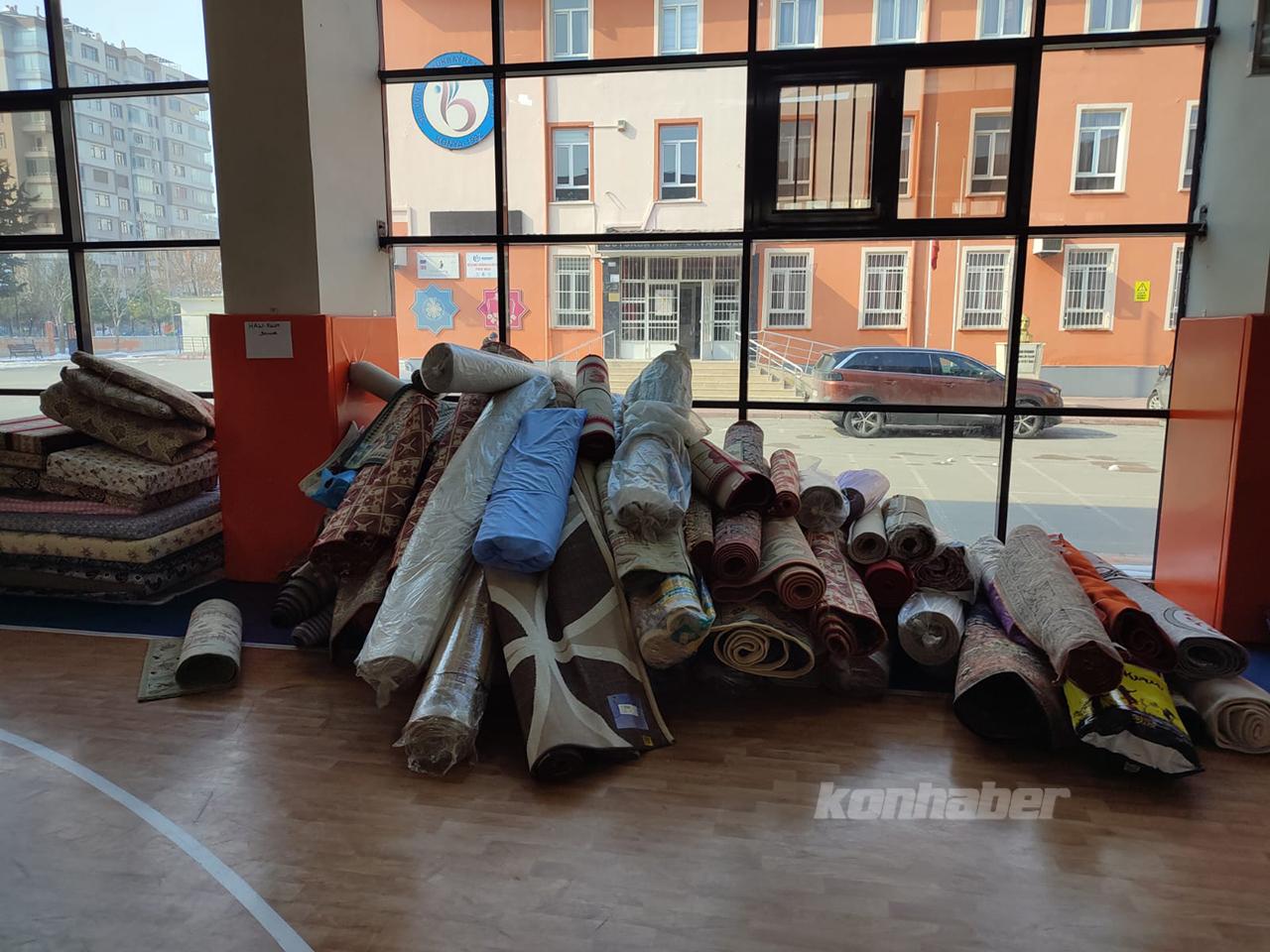 Ayrıca Konya Selçuklu Büyük Bayram Ortaokulu Spor Salonu da depremzedelerin ihtiyaçlarını karşılamak üzere depo haline getirildi. Kullanılabilir ev eşyası bağışlamak isteyenler buraya yardım gerçekleştirebilecek.