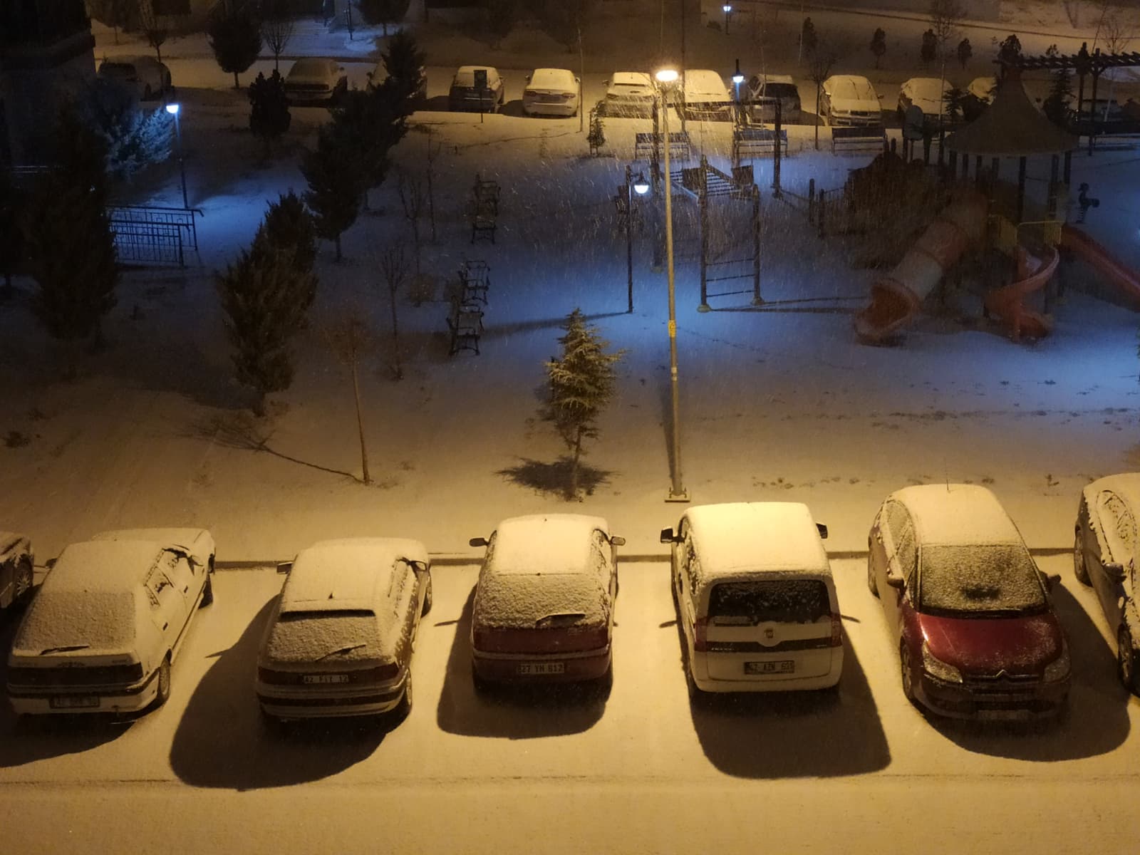 Konya’da beklenen kar yağışı akşam saatleriyle birlikte etkisini göstermeye başladı. Şehir merkezinde kısa sürede beyaz örtü oluşurken, özellikle yüksek kesimlerde yağışın daha yoğun olduğu gözlendi. Kar yağışıyla birlikte cadde, sokak ve parklar beyaza büründü.