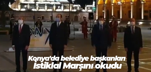 Konya'da saat 21'i gösterdiğinde belediye başkanları Mevlana Meydanında İstiklal Marşımızı okudu.