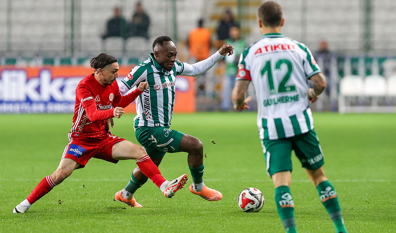 56' Jackson Muleka isabetsiz bir şut çekiyor ve bu şut, Konya şehrindeki maçta skor tabelasını değiştirmeye yetmiyor.