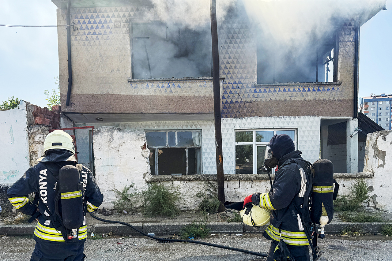 Konya'nın Selçuklu ilçesinde evde çıkan yangın itfaiye ekiplerince söndürüldü. Evde yalnız yaşayan 71 yaşındaki İmmihan Cücün, yanan evini gözyaşlarıyla izledi.