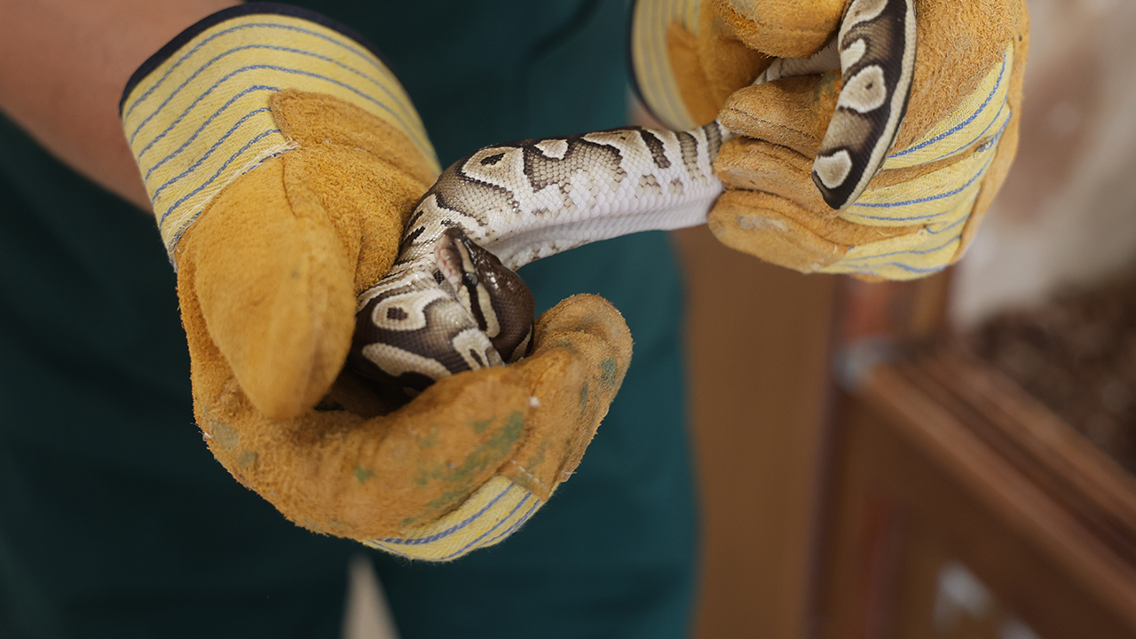 Karatay İlçe Belediyesi Hayvanat Bahçesi Veteriner Hekimi Ahmet Akbalcı, "Doğa Koruma Milli Parklar ekipleri tarafından hayvanat bahçemize getirilen piton yılanının yapılan muayenesinde herhangi bir sağlık problemi olmadığı anlaşılmış olup uygun ortam ısı ve nem bulunan özel ortamında beslemeye alınarak gözetimimizde bakım beslemesi yapılmaktadır. Kraliyet yılanları Afrika'nın kırsal kesimlerinde yaşayan sakin mizaçlı, zehri olmayan avlarını boğarak beslenen yılan türleridir. Burada bunları donmuş çözülmüş hayvanlarla beslemekteyiz. Herhangi bir beslemesinde canlı hayvan kullanmıyoruz. Bunların ömürleri 30 yıla kadar çıkabilmektedir. Canlı ağırlıkları 1.5-2 kilogram civarındadır. Boyları iki metreye kadar uzamaktadır. Yaban hayatında bulduğunuz bu tip yılan olabilir. Farklı türleri hayvanat bahçesine getirerek burada bizim uygun şartlarda beslememize yardımcı olabilirsiniz. Bu yılan da aynı şekilde polis ekipleri tarafından bulunmuş Doğa Koruma Milli Parklar tarafından bize teslim edilerek bakım beslemesini burada devam ettirmemizi sağlamıştır. Sağlık sorunu yok şu anda. Bu yılanların özelliği korkak, ürkek oldukları için tehlike anında ya da dış ortamda insanlarla temasında saldırmak yerine top şeklini aldıkları için zaten bu yılanlara bu isim verilmektedir. Herhangi birinin insanlara tehlike arz edecek bir durumu yoktur" diye konuştu.