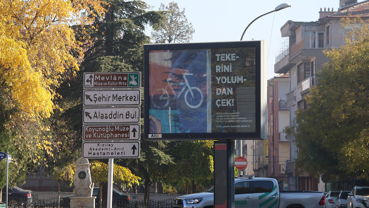 Bu kapsamda 635 kilometre bisiklet yoluyla Türkiye'nin en uzun bisiklet yoluna sahip şehri Konya'da konuya dikkat çekilmesi için billboardlarda, reklam panolarında, elektronik yönlendirme ve bilgilendirme ekranlarında bisiklet yollarına park edilmemesi konusunda mesajlar içeren paylaşımlar yapılıyor. Bunun yanı sıra bisikletseverler, bisiklet yollarına park eden araçların kapı kollarına “Siz Durunca Bisiklet İlerleyemiyor” ve “Siz Rahatınıza Bakarken Bisikletler Yolda İlerleyemiyor” yazılı kartlar bıraktı.