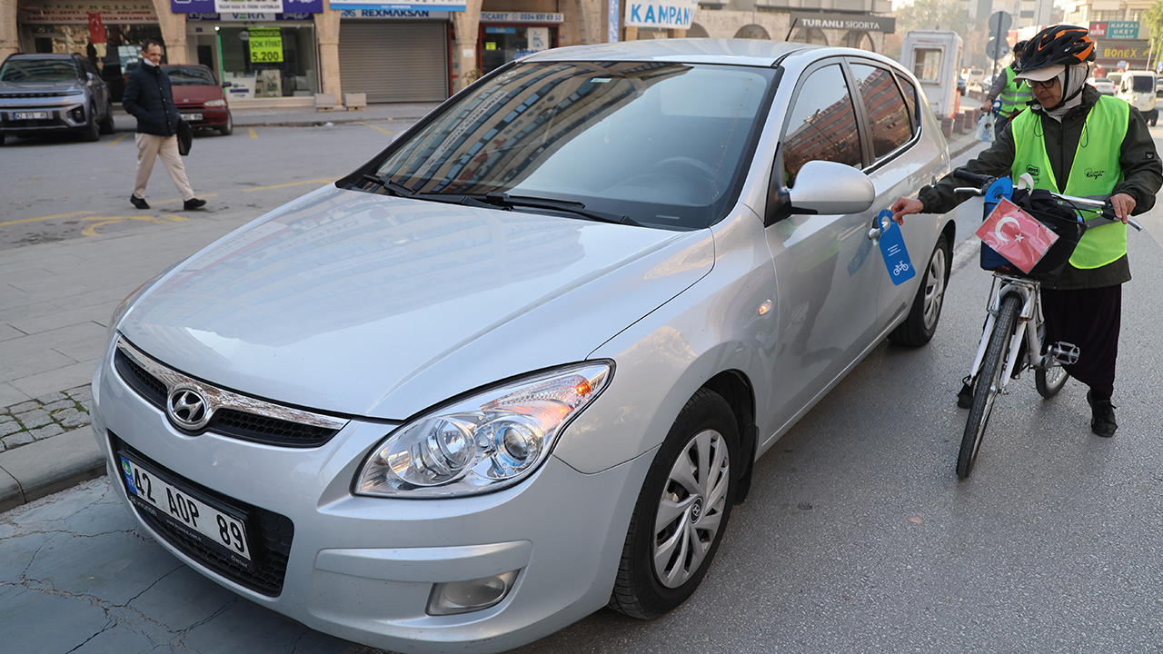 Konya Büyükşehir Belediyesi ve şehirde bisiklet konusunda faaliyet gösteren sivil toplum kuruluşları tarafından bisiklet yollarındaki araç parklanmasının önüne geçme adına farkındalık kampanyası yürütülüyor. Billboardlarda, reklam panolarında, elektronik yönlendirme ve bilgilendirme ekranlarında bisiklet yollarına park edilmemesi konusunda mesajlar içeren paylaşımların yanı sıra bisikletseverler, bisiklet yollarına park eden araçların kapı kollarına “Siz Durunca Bisiklet İlerleyemiyor” ve “Siz Rahatınıza Bakarken Bisikletler Yolda İlerleyemiyor” yazılı kartlar bıraktı.