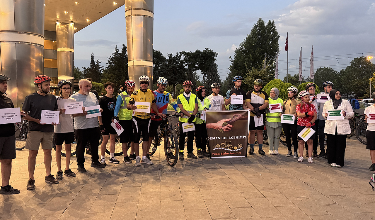Konya'da kadın bisikletçiler, orman yangınlarına dikkati çekmek amacıyla pedal çevirdi.