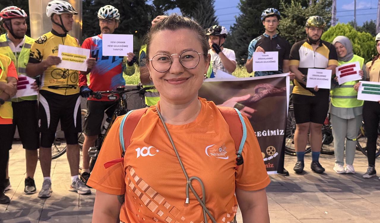 Konya Bisikletli Kadınlar Platformu üyesi Güler Ünal Uluçamlıbel, toplanma alanında yaptığı konuşmada, son yıllarda artan orman yangınlarının sadece ağaçları değil umutları da yaktığını söyledi.