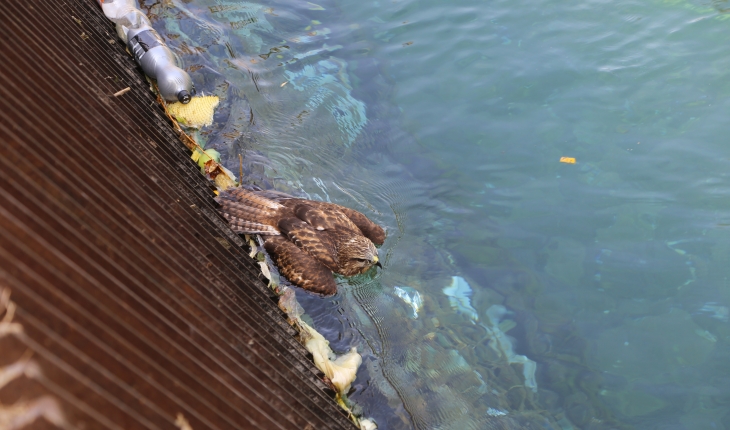 Konya'da İvriz doğal kaynak suyu havuzunda aç ve güçsüz halde bulunan şahin yavrusu, koruma altına alındı.
