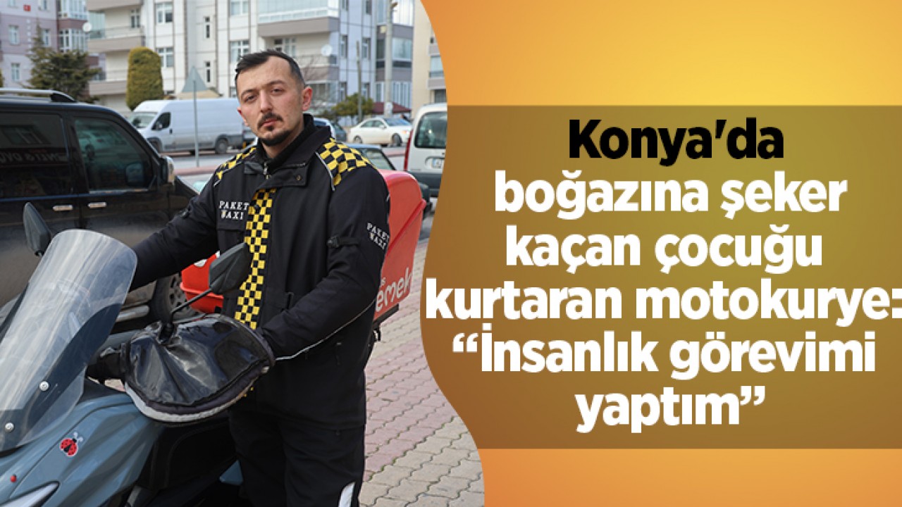 Konya'da kaldırımda yürürken boğazına şeker kaçan çocuğu Heimlich manevrası ile kurtaran motokurye Mücahit Acar, “Kardeşimin sürekli boğazına bir şey kaçardı oradan biliyorum. Çok şükür insanlık görevimi yaptım” dedi.