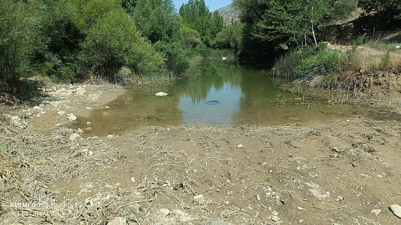 Çetintaş, “Burası Yer Köprü Şelalesi'nin uzantısı olan Göksu Deresi. Geçen sene bu derede akan su şuan yok. Bölge halkı, acil çözüm çağrısında bulunarak yetkililerin konuya duyarlılık göstermesini bekliyor" dedi. (Veli Şengül)