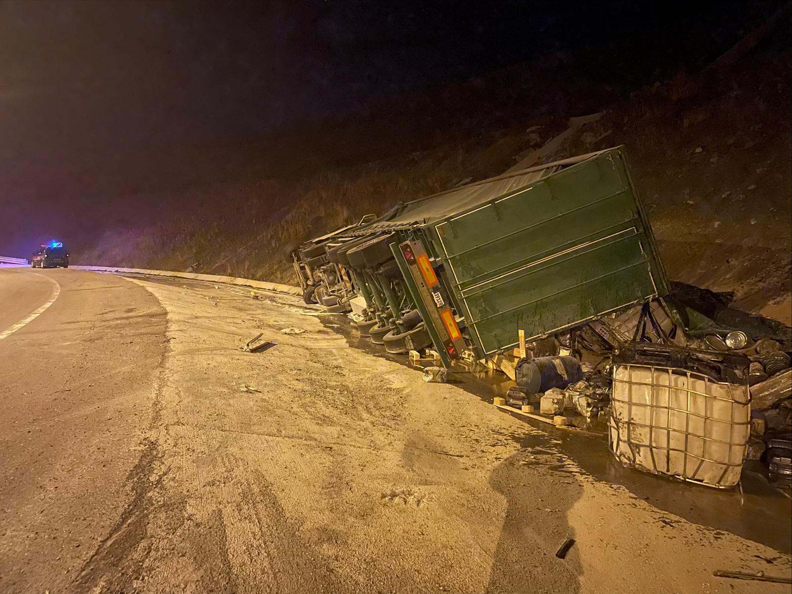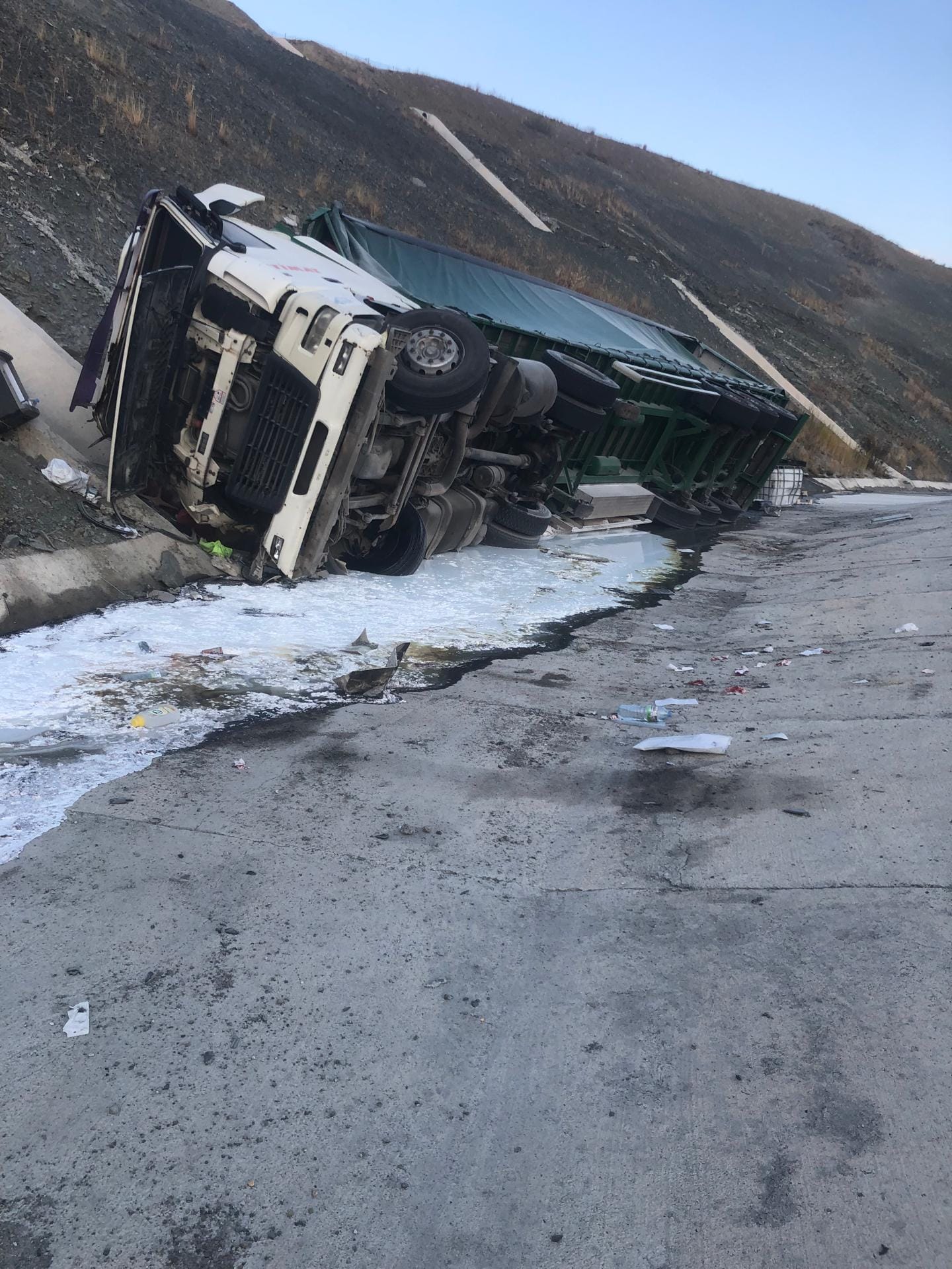 Kaza, Ankara - Niğde otoyolu, Kulu Gişelerinde meydana geldi. Alınan bilgiye göre, U. D. idaresindeki boya yüklü yabancı plakalı tır, iddiaya göre virajı alamayarak kontrolden çıktı. Tır, şarampole devrildi.