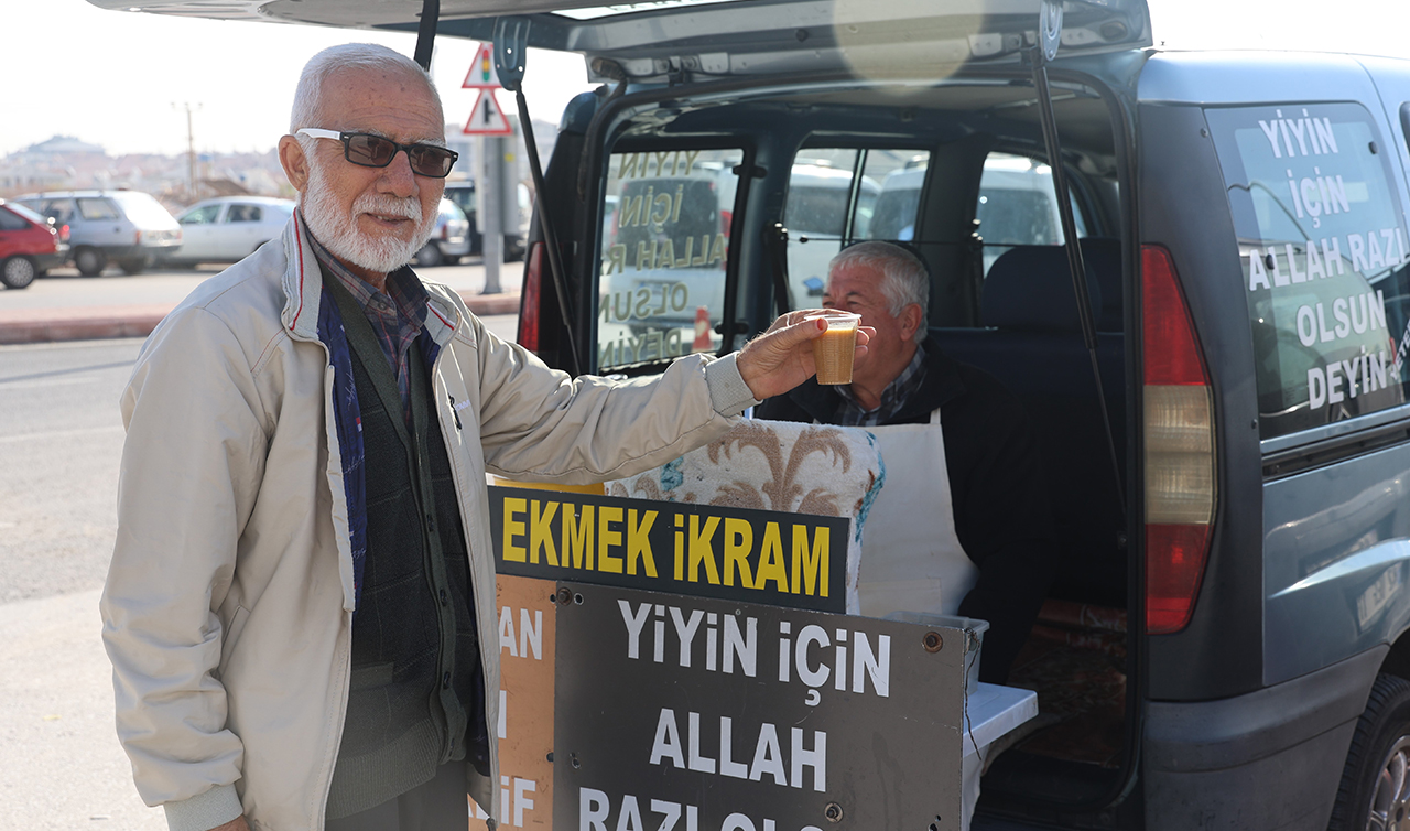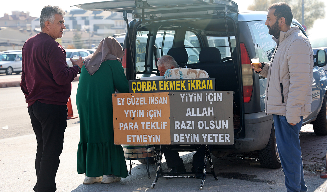 Konya'da geçirdiği bağırsak ameliyatlarından sonra esnaflıktan emekli olan 62 yaşındaki Lokman Yıldız, 7 yıl önce hayır işleri yapmak istedi. Yazın soğuk limonata, kışın ise çorba dağıtan Lokman Yıldız, olumlu tepkileri görünce 'bedava iş yapılmaz' denilmesine rağmen hayır işlerine devam etti. Sabah erkenden kalkarak eşiyle birlikte çorba hazırlayan ve termosa dolduran Lokman Yıldız, hafif ticari aracı ile hastane önlerine giderek yanında ekmekle birlikte vatandaşlara dua karşılığı bardak bardak çorba dağıtıyor.