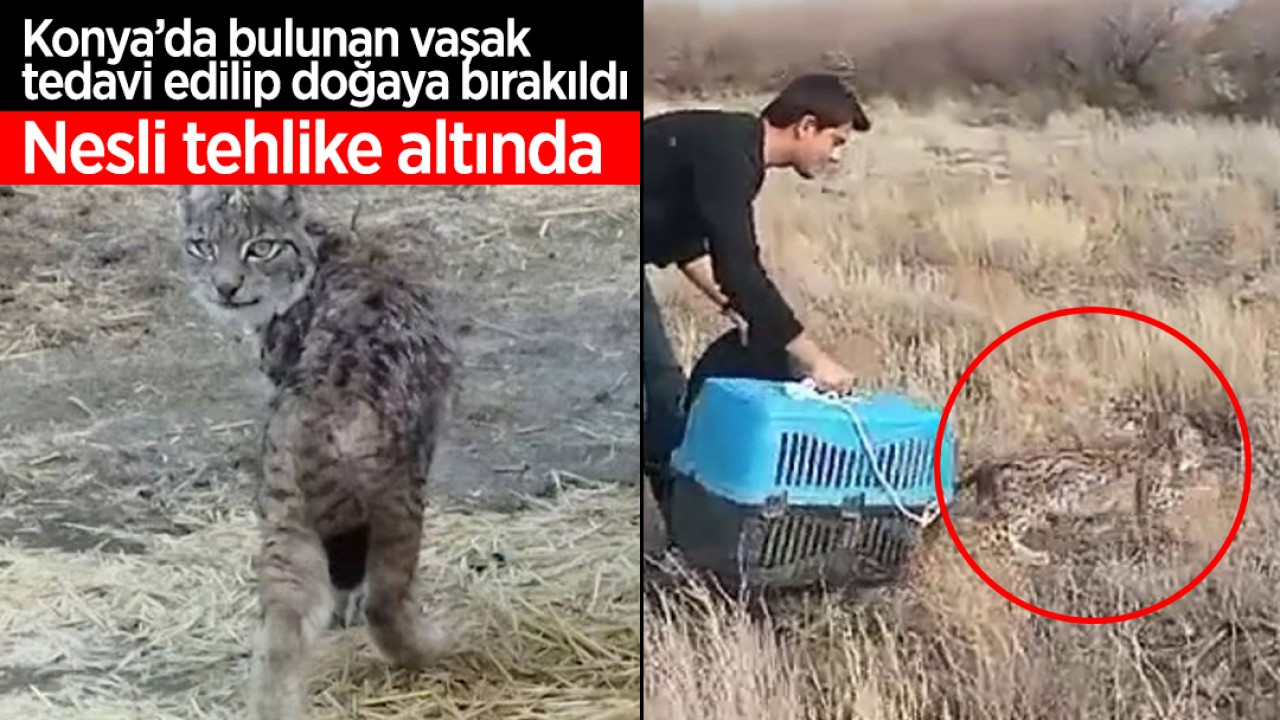 Bitkin halde bulunan vaşak, Selçuk Üniversitesi Veteriner Fakültesine sevk edilmişti. Tedavisi tamamlanan vaşak, doğa bırakıldı.(Yunus Köroğlu)