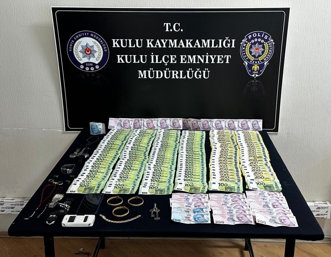 Şüphelinin yanında bulunan çantada yapılan aramada; 3 adet bilezik, 27 bin 550 Euro, 8 bin 235 TL ile Mercedes marka bir araca ait anahtar ele geçirildi. Ele geçirilen eşyaların, 28 Aralık 2025 günü Kulu ilçesi Cumhuriyet Mahallesi’nde meydana gelen oto ve evden hırsızlık olaylarında çalınan eşyalar olduğu tespit edildi.