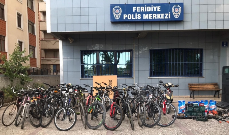 Çeşitli marka ve modellerde 33 bisiklet, 1 elektrikli bisiklet, akü ve adaptör gibi çok sayıda bisiklet parçasının yanı sıra elektronik eşya, elektrikli testere, deterjan gibi çeşitli çalıntı malzemeler ele geçirildi.