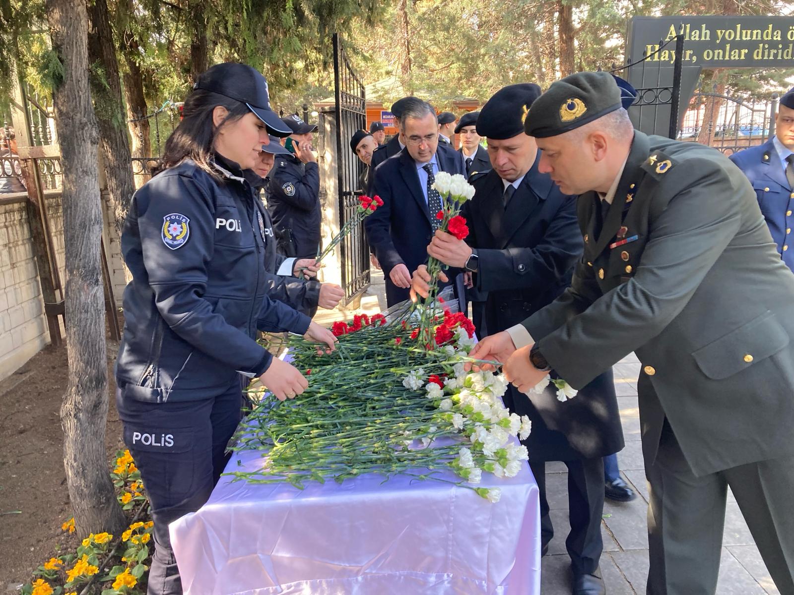 Protokol üyeleri, şehit aileleri ve öğrenciler, şehit mezarlarını ziyaret edip karanfil bıraktı, Kur'an-ı Kerim okundu.Törene Vali Özkan'ın yanı sıra AK Parti Konya milletvekilleri Ziya Altunyaldız ve Latif Selvi, Konya Emniyet Müdürü Mahmut Karabulut, İl Jandarma Komutanı Tümgeneral Cemil Lütfi Özkul, Konya Büyükşehir Belediye Başkan Vekili Mustafa Uzbaş, MHP İl Başkanı Remzi Karaarslan, gaziler, askeri ve sivil erkan, şehit aileleri, öğrenciler ile emniyet mensupları katıldı.