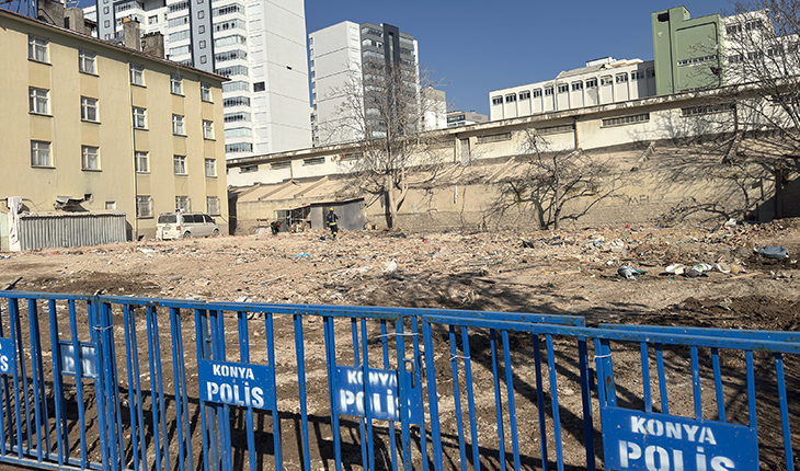 Selçuk Mahallesi'ndeki binanın enkazının Konya Büyükşehir Belediyesi ekiplerince kaldırılması sonrasında bölge polis bariyeriyle korumaya alındı.