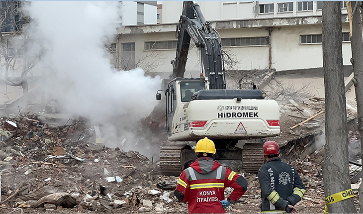 Ardından binanın enkazı, Konya Büyükşehir Belediyesi ekiplerince yaklaşık 4 saat süren çalışmanın ardından kaldırıldı.