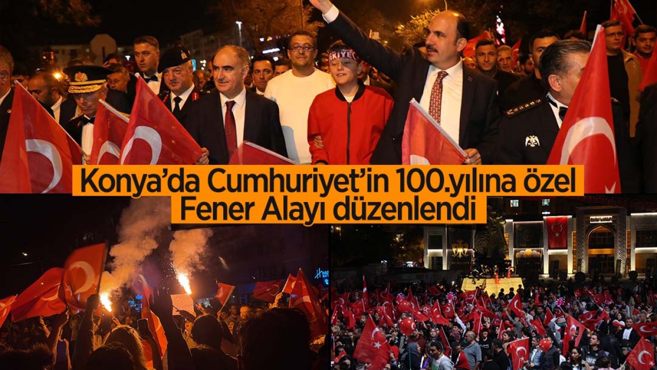 Konya'da 29 Ekim Cumhuriyet Bayramı ve Cumhuriyet'in 100'üncü yıl dönümü kutlamaları kapsamında fener alayı yürüyüşü düzenlendi.