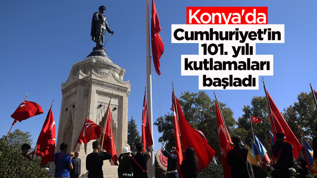 Konya'da 29 Ekim Cumhuriyet Bayramı ve Cumhuriyet'in 101. yıl dönümü kutlamaları kapsamında çelenk töreni düzenlendi.