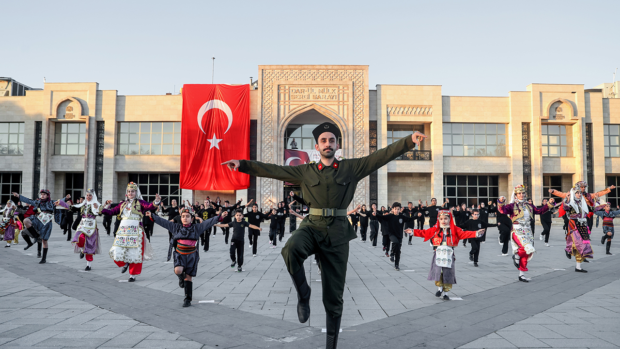 Etkinlikte, Anadolu Kafkas Kartalları Müzik, Dans ve Sanat Topluluğu üyesi 101 dansçı, Cumhuriyet'in 101. yıl dönümüne özel zeybek gösterisi sundu.Çocukların da yer aldığı zeybek oyununu vatandaşlar ilgiyle izledi.