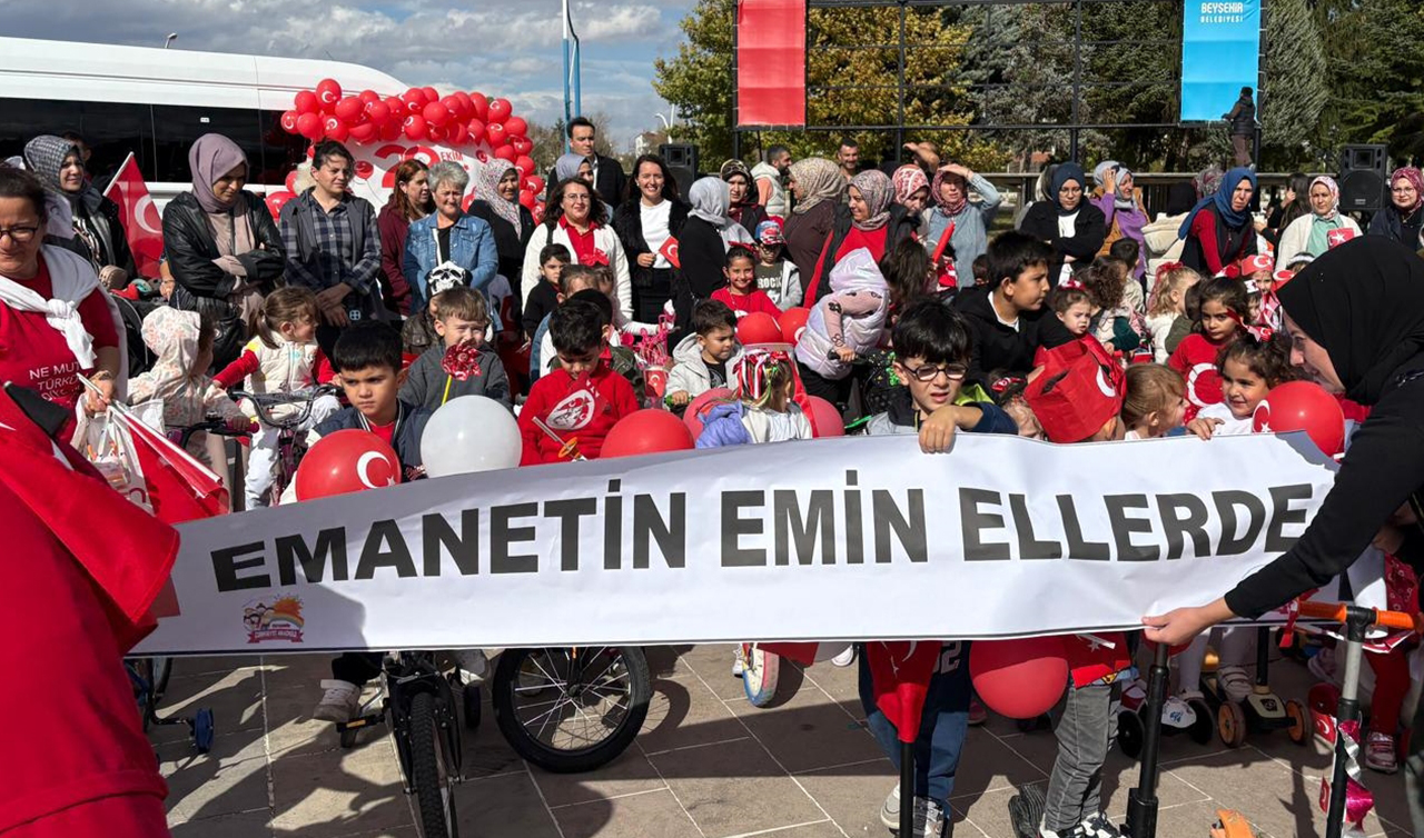 Beyşehir ilçesinde ise 102 bisikletçi, "Emanetin emin ellerde" yazılı pankartla kortej geçişi yaptı.