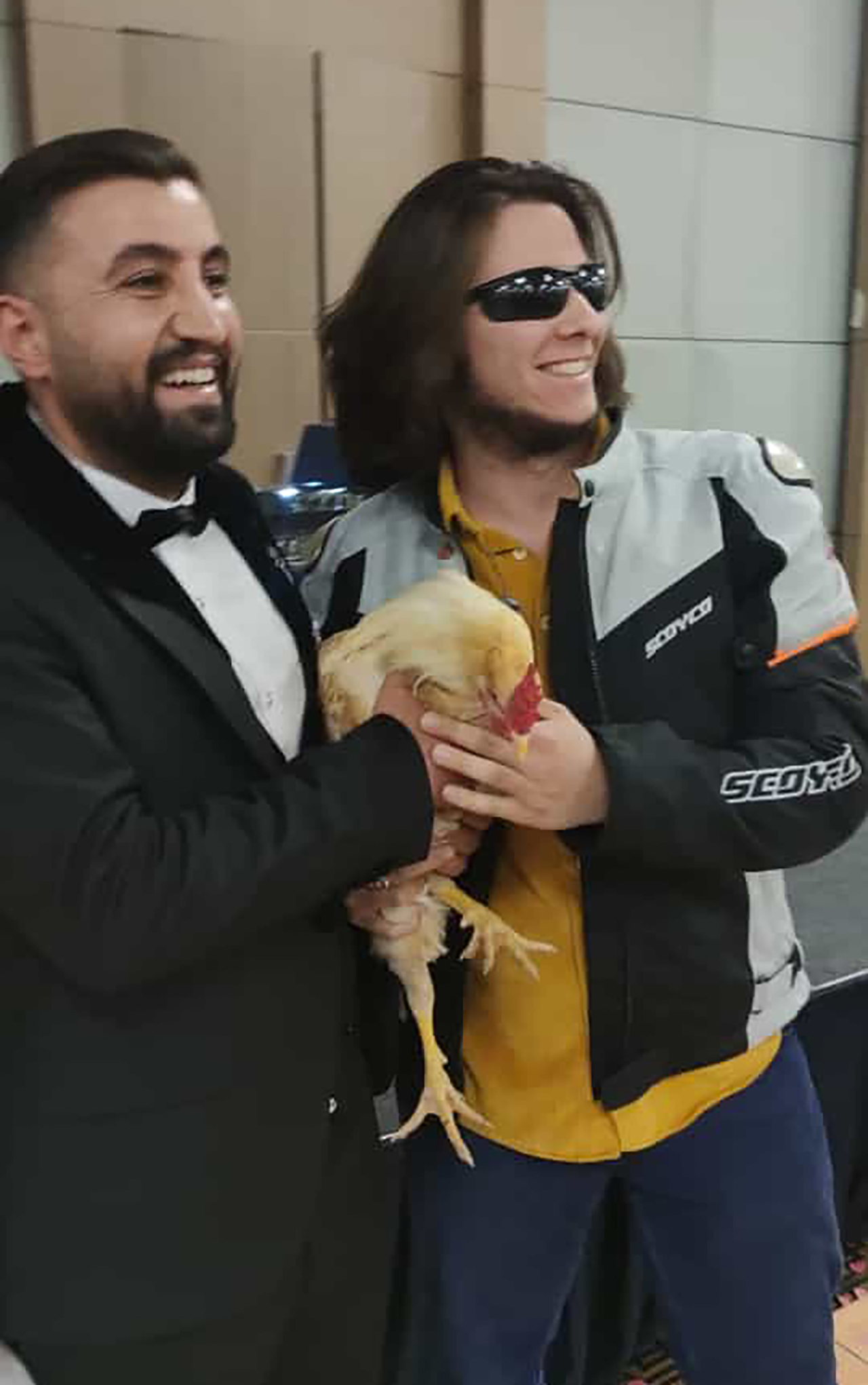 Düğün merasiminde her şey normaldi. Takı vakti geldi. Damat ve gelin takı töreni için sahne de yerini aldı. Davetliler takıları taktim etmeye başladığı esnada damadın arkadaşı Muhammet Demirpolat elinde bir horozla geldi. Her kesi şok eden görüntüler işte o anda kaydedildi. Arkadaşı damada horoz hediye etti. Şaşkınlık yerini kahkahalara bıraktı.