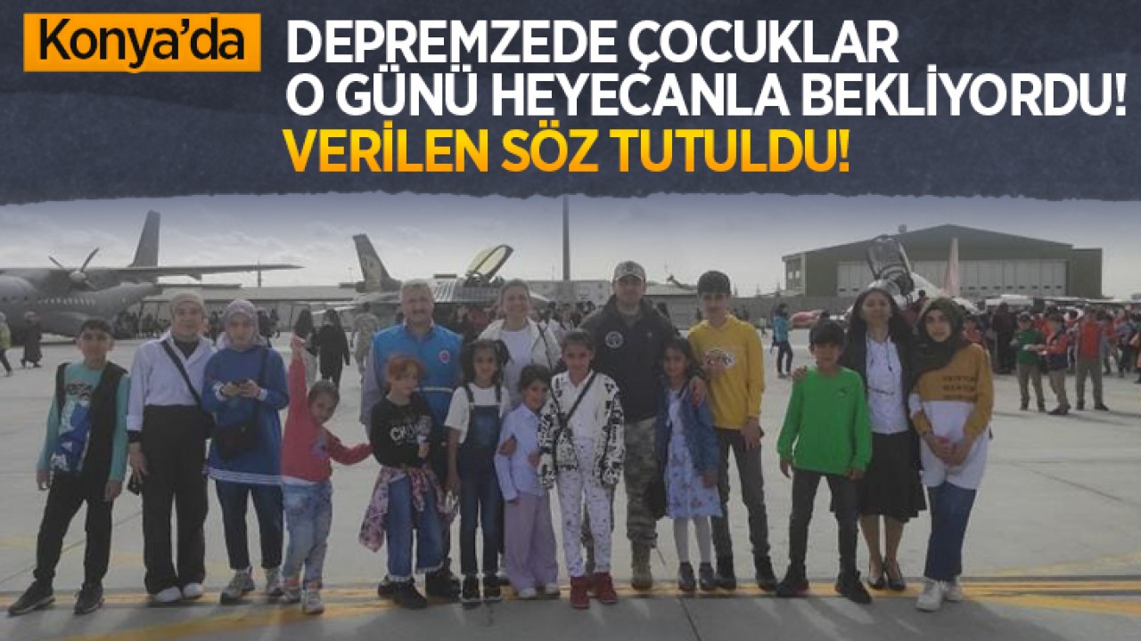 Depremzede çocuklar, kendilerini ziyaret eden ve onlarla yakından ilgilenen askerlere, uçakları yakından görmek istediklerini söyledi. Bunun üzerine onlara unutulmaz bir gün yaşatan askerler ise kendilerini ağırlayabileceklerinin sözünü verdi. Aldıkları sözün ardından heyecanları her geçen gün artarak devam eden depremzede çocuklar Konya 3. Ana Jet Üs Komutanlığı’nda görevli askerler ile bir araya geldiler.