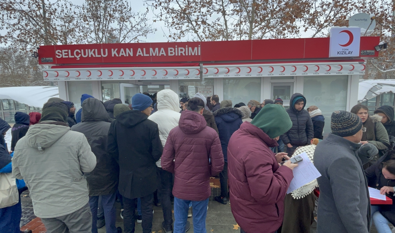 Konya' da vatandaşlar, Kahramanmaraş merkezli ve 10 ili etkileyen depremler sonrası bölgede oluşabilecek ihtiyacın karşılanması için kan bağışında bulunuyor.