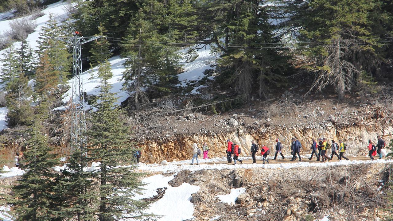 Konyalı doğaseverler, "Asrın felaketi" olarak nitelenen, 6 Şubat'ta meydana gelen depremlerden etkilenenlerin anısına Beyşehir'de kar yürüyüşü etkinliğinde bir araya geldi.