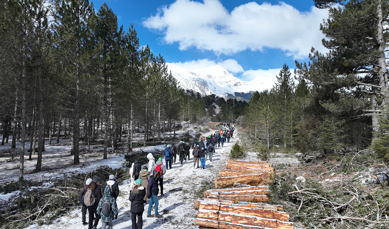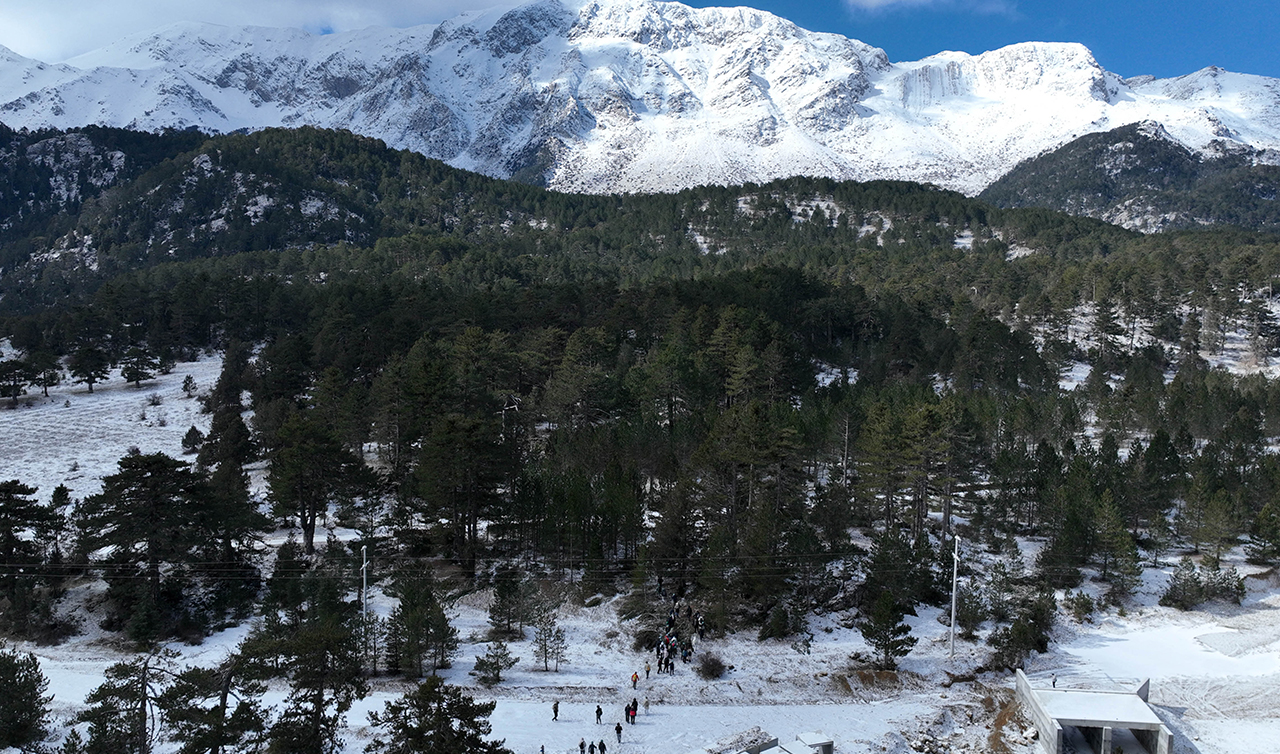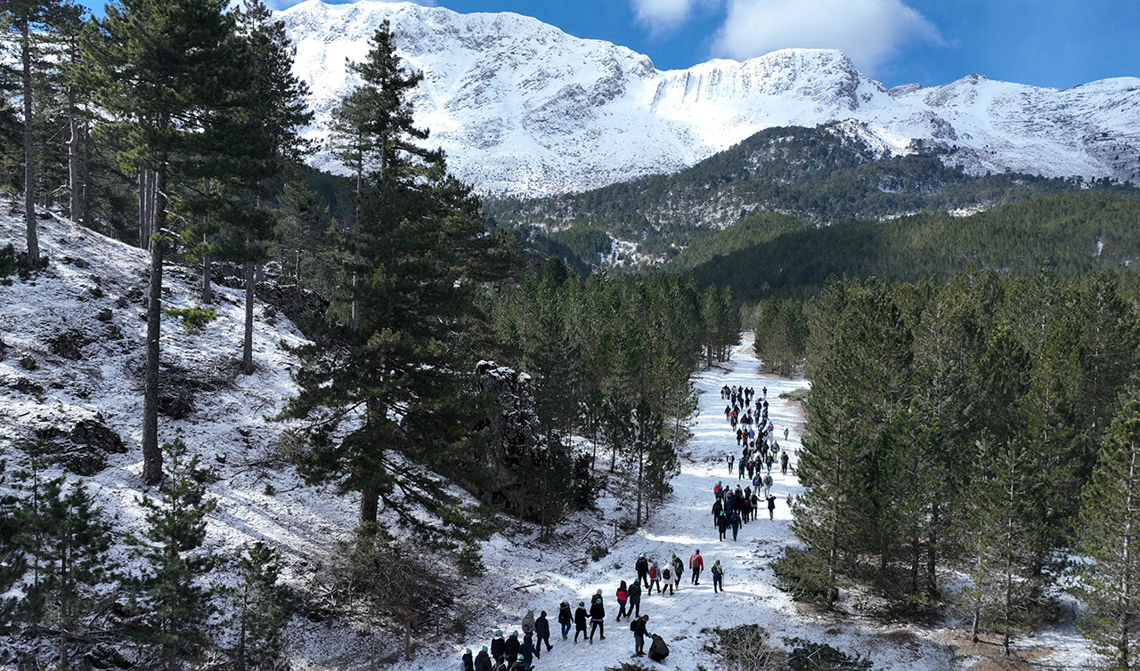Anamas Dağı'nın Kurucuova Mahallesi eteklerindeki İslibucak Ormanı'nda buluşan doktorlar, 7 kilometrelik parkurda doğa yürüyüşü gerçekleştirdi. Göz doktorları, göz tansiyonu rahatsızlığına dikkat çekmek için kar örtüsü üzerinde yürüdü.