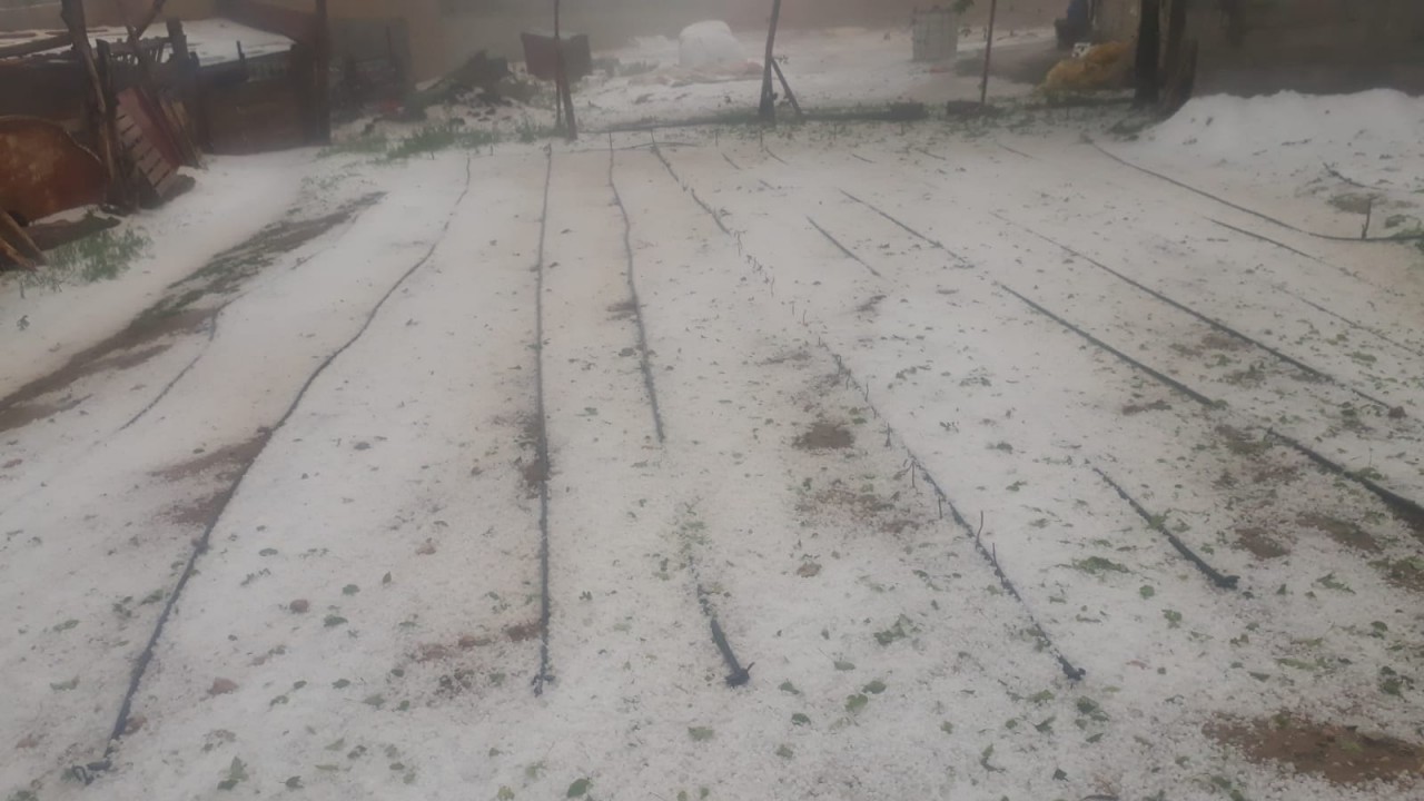 Konya'nın Kadınhanı ilçesinde etkili olan dolu, ekili araziye zarar verdi.